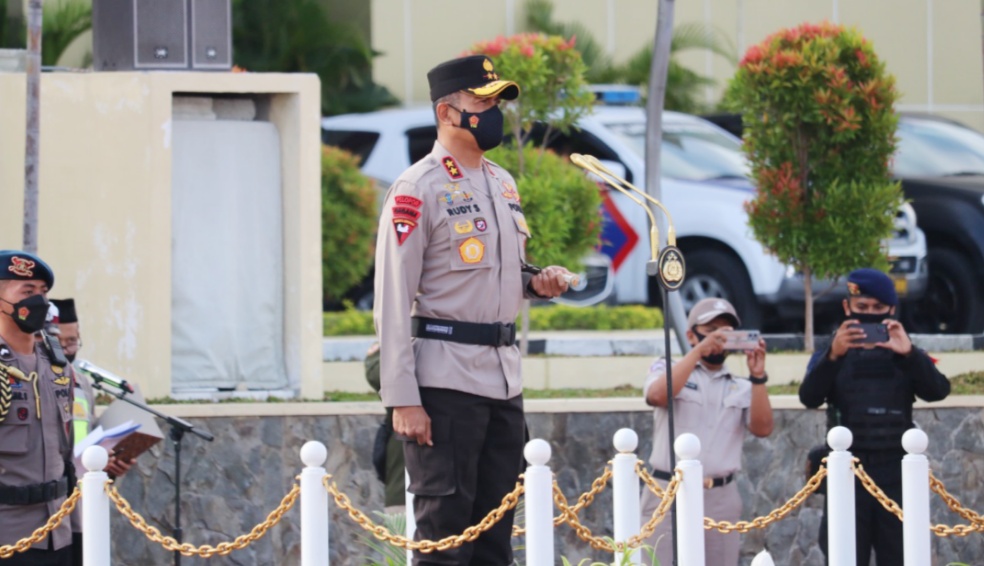 Kapolda Sulteng Irjen Pol. Drs. Rudi Sjufahriadi bertindak selaku pimpinan apel dan sekaligus berkesempatan membacakan amanat tertulis Kapolri Jenderal Pol. Drs. Listyo Sigit Prabowo, M.Si.
