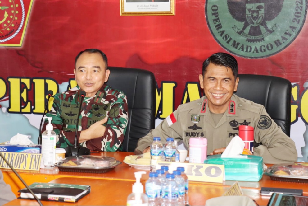 POSO, DETAIL73.COM-Kapolda Sulteng Irjen Pol. Rudy Sufahriadi bersama Danrem 132 Tadulako Brigjen TNI Toto Nurwanto hari ini, Rabu (11/05/2022), laksanakan analisa dan evaluasi (anev) mingguan pelaksanaan operasi Madago Raya di Pos Komando Taktis (Poskotis) Operasi Madago Raya yang berada di Desa Tokorondo Kabupaten Poso, Sulawesi Tengah.