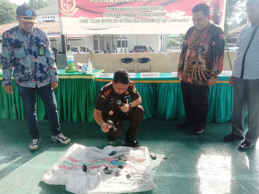 Pantauan pewarta, untuk babuk shabu-shabu dimusnakan dengan cara dimasukan ke dalam mesin blender, yang telah berisi cairan pelarut. Untuk handphone, dimusnakan dengan cara dihancurkan dengan menggunakan martil.