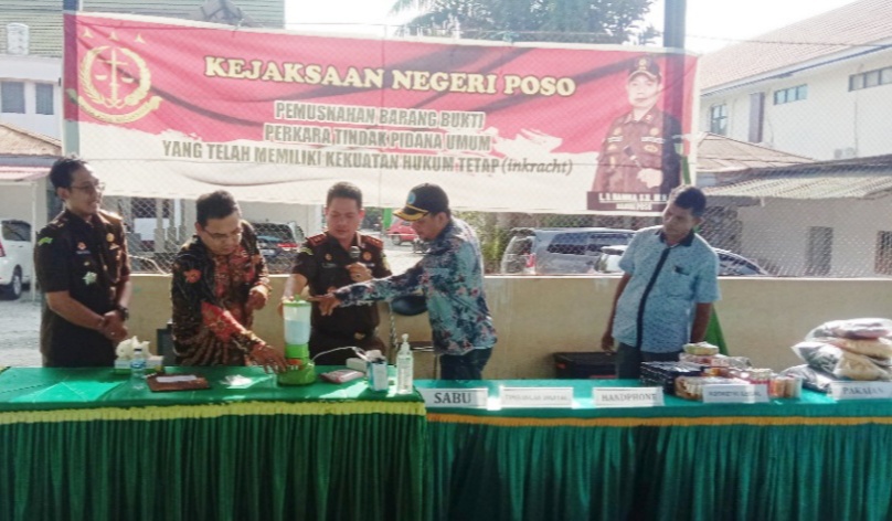 POSO, DETAIL73.COM-Kejaksaan Negeri (Kejari) Poso, kembali melakukan giat pemusnahan sejumlah barang bukti (babuk), perkara tindak pidana umum yang telah memiliki kekuatan hukum tetap (inkracht), bertempat di lapangan Futsal Kejari Poso, Kamis (21/07/2022).