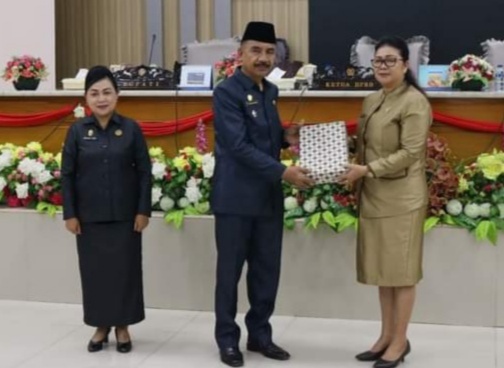 dr. Verna G.M Inkiriwang, yang diwakili oleh Pj. Sekretaris Daerah Kabupaten (Setdakab) Poso, Frits Sam Purnama, SH., M.AP menyampaikan Pengantar Nota Keuangan Perubahan Anggaran Pendapatan dan Belanja Daerah (APBD) dalam sidang paripurna Dewan Perwakilan Rakyat Daerah (DPRD) Kabupaten Poso, pada Senin pagi, (19/09/22), di ruang Banua Mpogombo DPRD Poso.