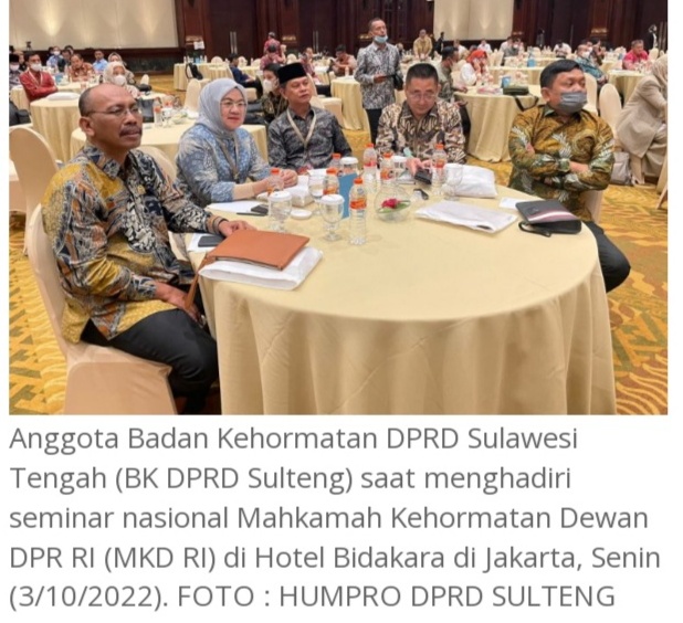(BK DPRD Sulteng) menghadiri seminar nasional Mahkamah Kehormatan Dewan DPR RI (MKD RI) di Hotel Bidakara di Jakarta, Senin (3/10/2022).