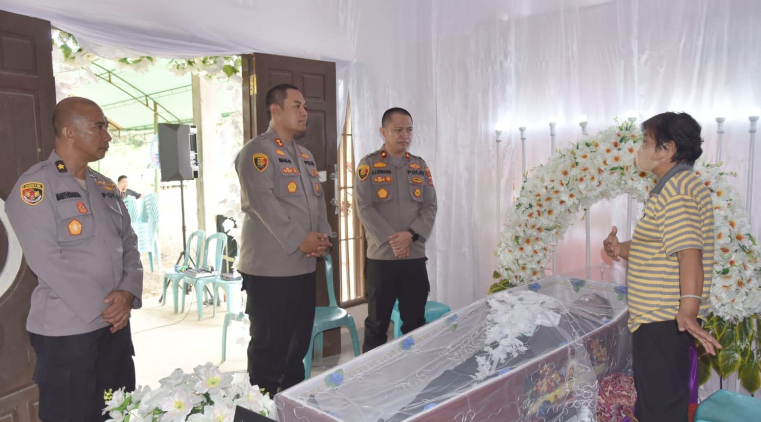 Kapolres Morowali Utara AKBP Imam Wijayanto, S.I.K. M.H didampingi Wakapolres Morowali Utara Kompol Alfian Joan Komaling, S.H., M.Pd, Kabaglog Kompol Marthen Ratu, Kasubsi PIDM Sihumas Polres Morowali Utara Bripka Fardi Kadang, S.H melayat ke rumah duka pagi tadi di desa Tinompo Kecamatan Lembo Kabupaten Morowali Utara. (18/8/2023).