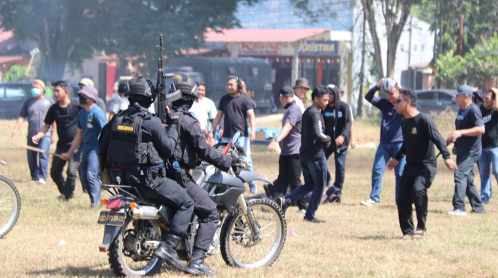 Simulasi ini meliputi berbagai tahapan, dimulai dari kondisi tenang hingga situasi yang memuncak pada tindakan anarkis dan penjarahan.”tambahnya.