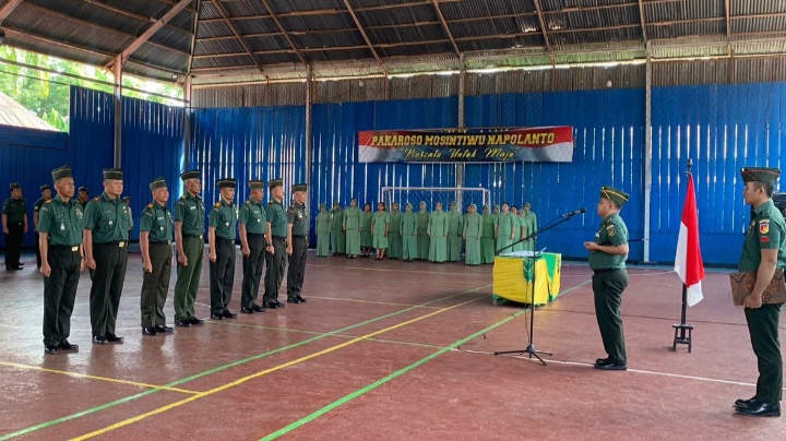 Dalam sambutannya, Dandim 1307/Poso Letkol Inf Hasroel Tamin S.H.,M.Hub.Int. mengucapkan selamat kepada para Perwira dan Bintara yang menduduki jabatan baru sebagai Perwira Staf, Komandan Koramil maupun Plh. Danramil jajaran Kodim 1307/Poso.