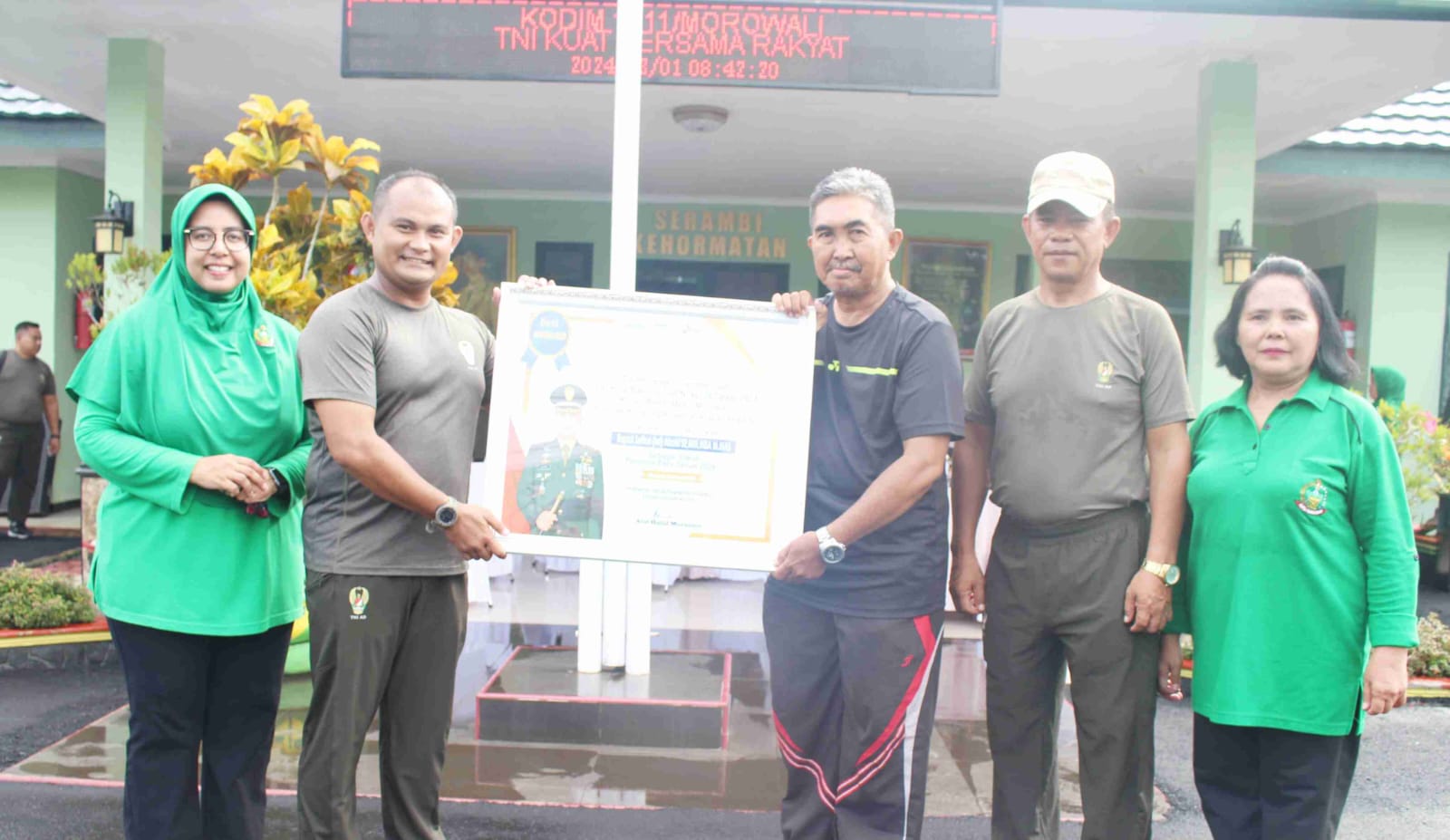 MOROWALI- Di sela-sela Hari Ulang Tahun (HUT) ke-78 Persit Kartika Chandra Kirana, Dandim 1311/Morowali, Letkol (Inf) Alzaki, S.E., M.M., M.B.A., M.M.A S, Jumat (1/3/2024), menerima best award kategori “Tokoh Pembina Pers 2024” dalam rangka Hari Pers Nasional (HPN).