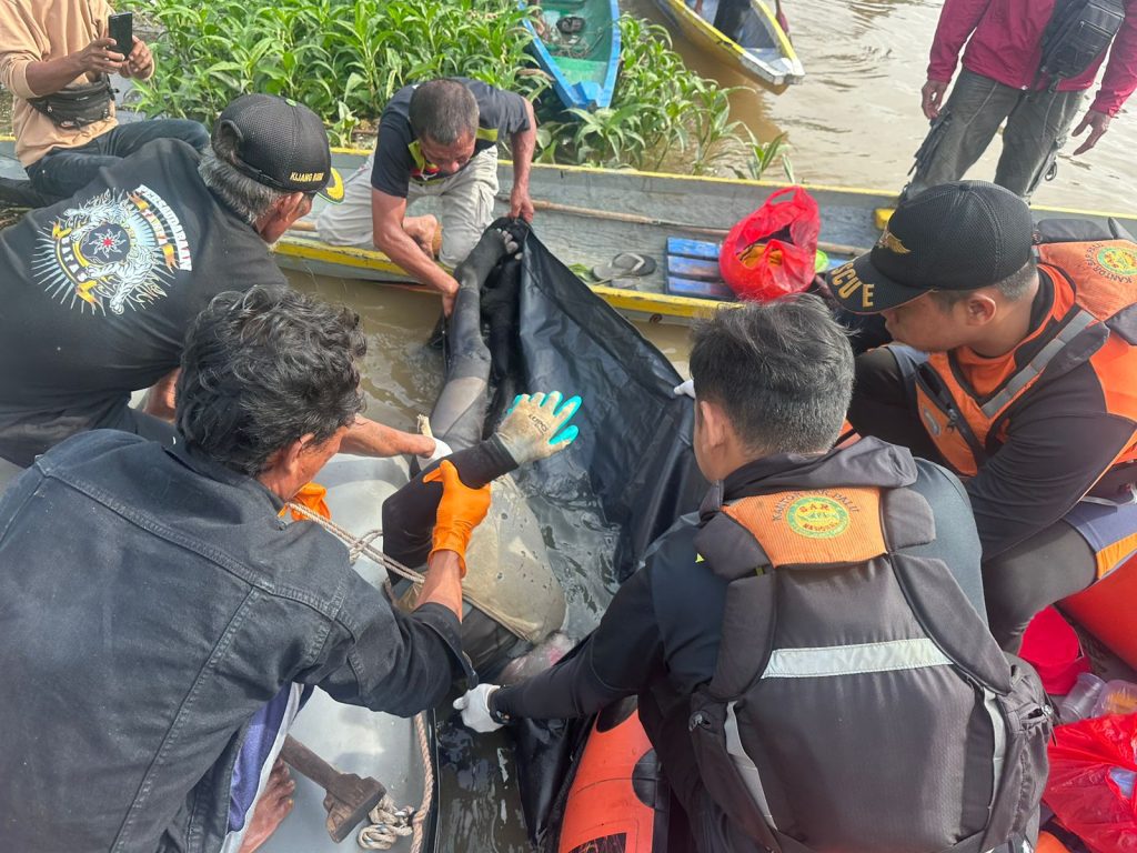 Saat ditemukan kondisi korban telah mengapung dipermukaan Sungai sekitar 200 meter dari tempat pencarian sebelumnya.