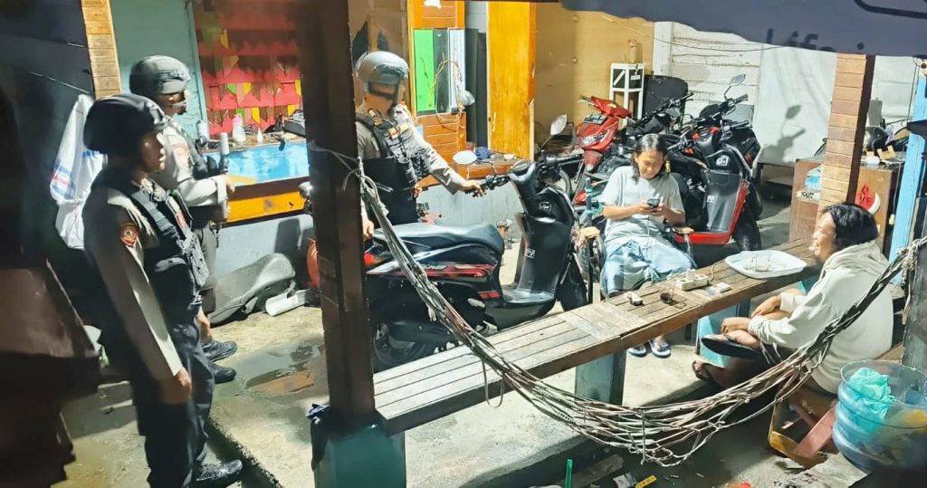 POSO- Satuan Tugas (Satgas) Preventif Operasi Mantap Brata (OMB) Tinombala 2024, unit Sabhara Polres Poso melakukan patroli malam hari dalam upaya memelihara dan memastikan kondusifitas keamanan serta ketertiban selama masa tahapan rekapitulasi hitung surat suara Pemilu 2024 tingkat kabupaten, Minggu (03/03/24).
