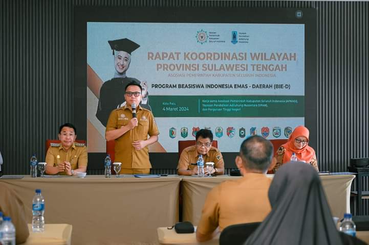 Bupati Morowali Utara Delis J. Hehi menjelaskan program beasiswa ini setelah sosialisasi program BIE-D Apkasi kepada para bupati/wakil bupati, Kepala Dinas Pendidikan, Kepala BPSMD dan Kepala Bappeda kabupaten/kota se-Sulteng di Swissbell Hotel Palu, Senin.(4/3)